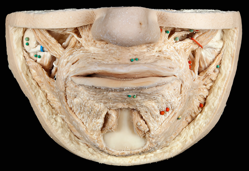 m. risorius (gult og grønt mærke)